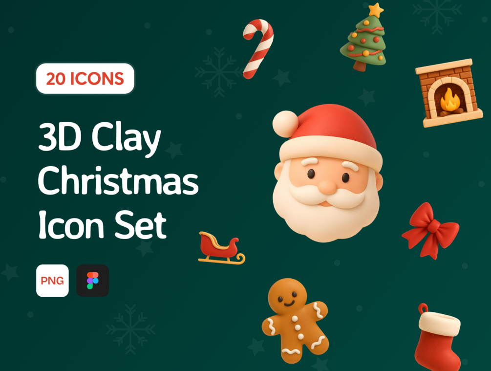 As winter quietly drifts in and the first twinkling lights begin to glow across the streets, a tiny, magical collection comes to life: the 3D Clay Christmas Icon Set.